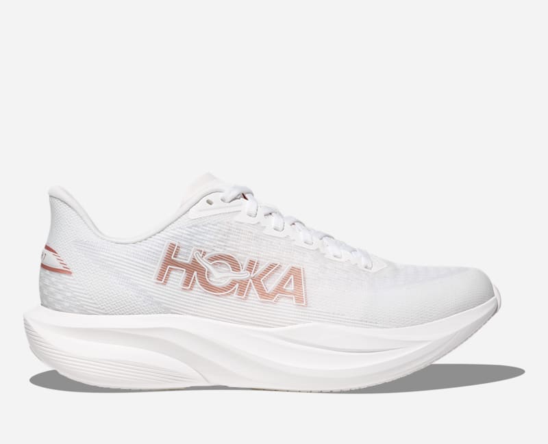HOKA Mach 7 Chaussures pour Femme en Frost/Rose Gold Taille 42 Large - Running Sur Route