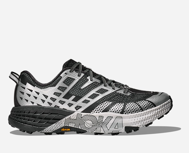 Style rétro. Matériaux modernes. Nous avons puisé dans nos archives et avons associé nos emblématiques Mafate Speed 2 et Mafate 3 pour créer une chaussure moderne. Construite sur la base de la Mafate Speed 2 et surmontée de la tige iconique de la Mafate 3, cette chaussure faite pour la route est dotée d'une languette à soufflet et d'un système de laçage rapide permettant de l'enfiler et de la retirer facilement. - HOKA Mafate Three2 Chaussures en Frost/Black Taille 42 - Lifestyle